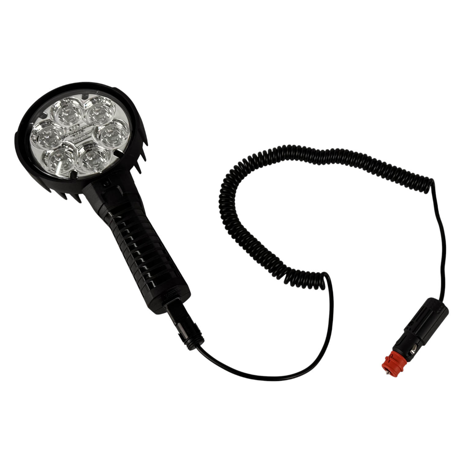 Die Stromversorgung erfolgt über ein robustes Spiralkabel. Am Scheinwerfer ist ein DT-Steckverbinder verbaut, am anderen Ende ein Universal-Stecker für 12/24 V Norm und Universalsteckdosen (Zigarettenanzünder) mit integrierter Sicherung. Dadurch ist der HD-SL4000 sofort einsatzbereit und lässt sich ohne feste Installation an verschiedensten Fahrzeugen betreiben.