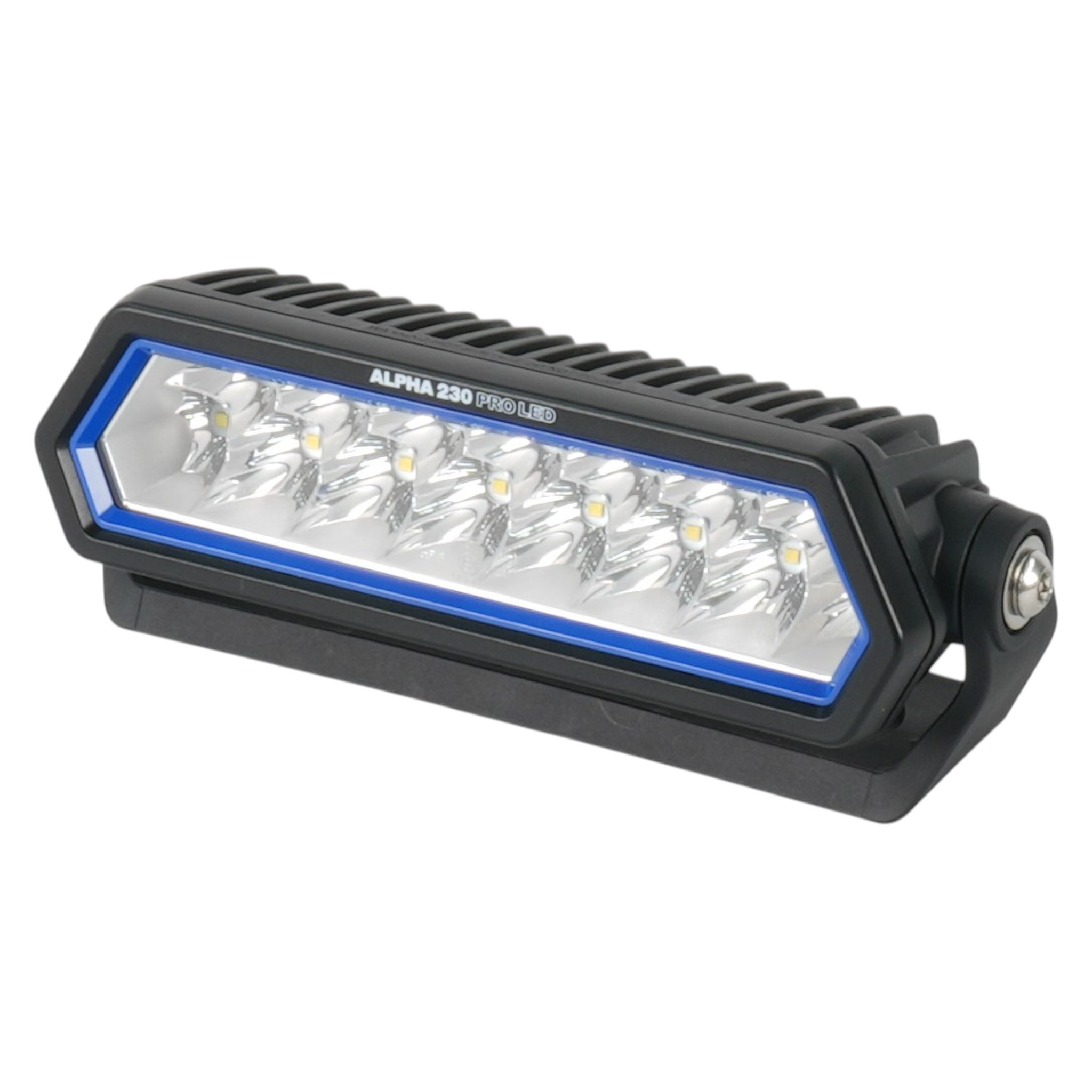 Ein besonderes Highlight: Der ALPHA 230 lässt sich durch die im Lieferumfang enthaltenen farbigen Adapterringe individuell gestalten. Damit kann der Scheinwerfer optisch perfekt an Fahrzeugdesign oder Corporate Identity angepasst werden – ein Feature, das in der Profi-Klasse nur selten zu finden ist.